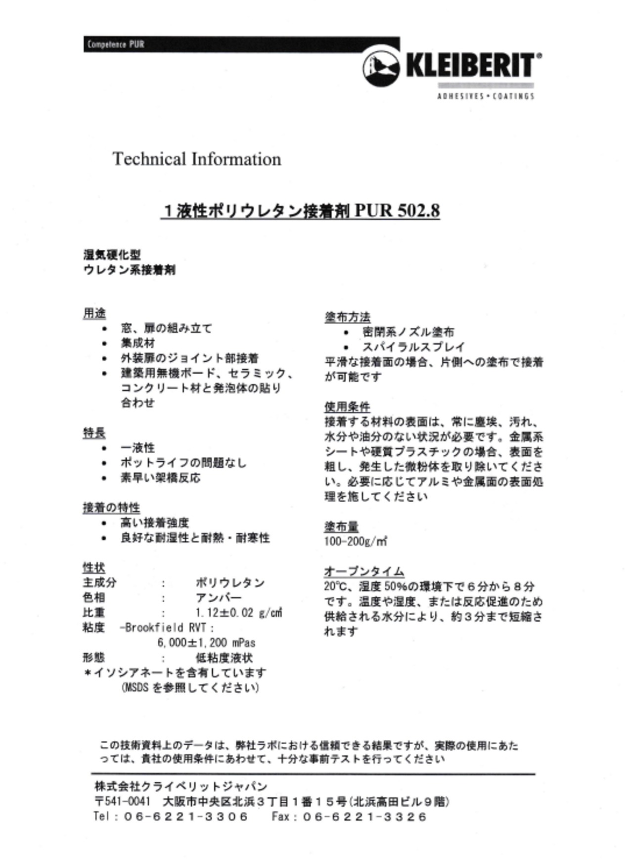 クライベリット 501シリーズ|KLEIBERIT PUR 0.5kg|ポリウレタン系湿気硬化型1液